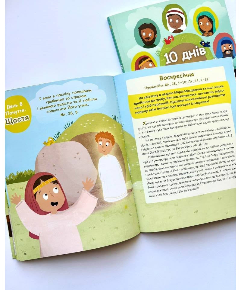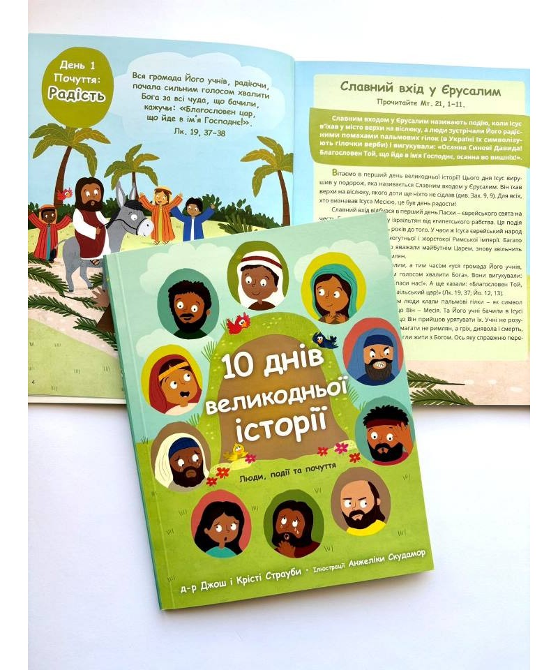Книжка “10 днів великодньої історії” призначена для сімейних читань з дітьми молодшого шкільного віку. Вона розповідає про 10 днів життя Ісуса Христа і буде корисною для тих, хто хоче говорити з дітьми про емоції: радість Квітної неділі, здивування на Тайній вечері, сум біля хреста, щастя біля порожнього гробу. Усі події до та після Христового Воскресіння були наповнені почуттями та емоціями!