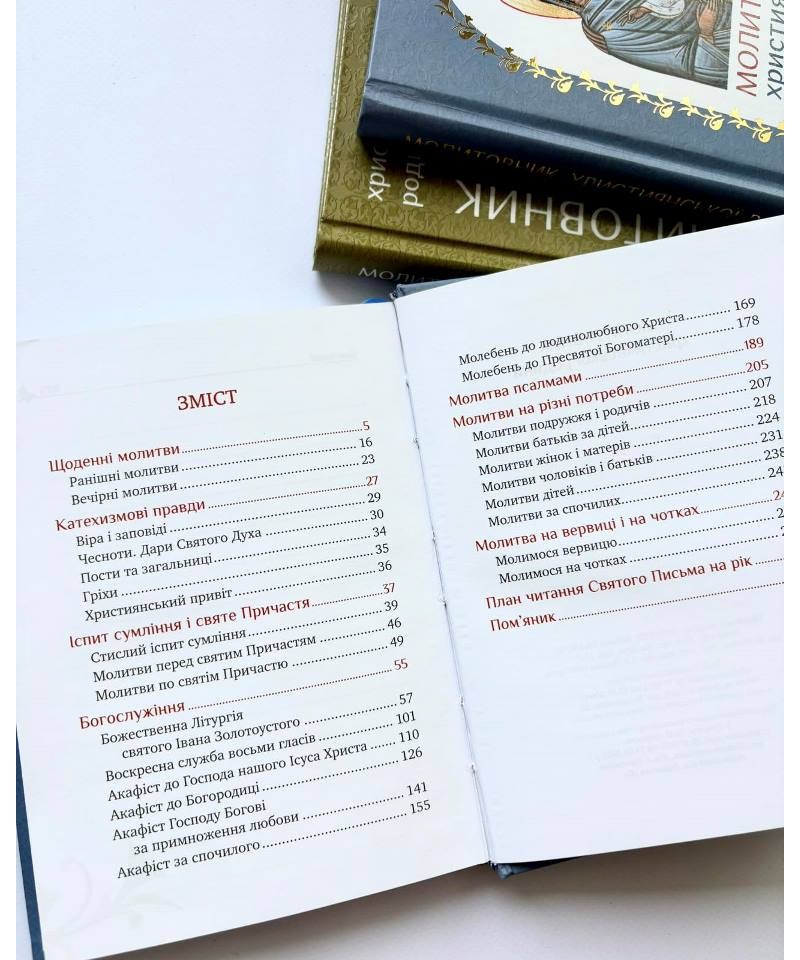 Універсальний іспит сумління допоможе підготуватися до Таїнства Сповіді. План читання Святого Письма на рік заохочує практикувати щоденне читання Біблії. Наприкінці молитовника — кілька сторінок для вписування імен померлих, за яких молиться родина.