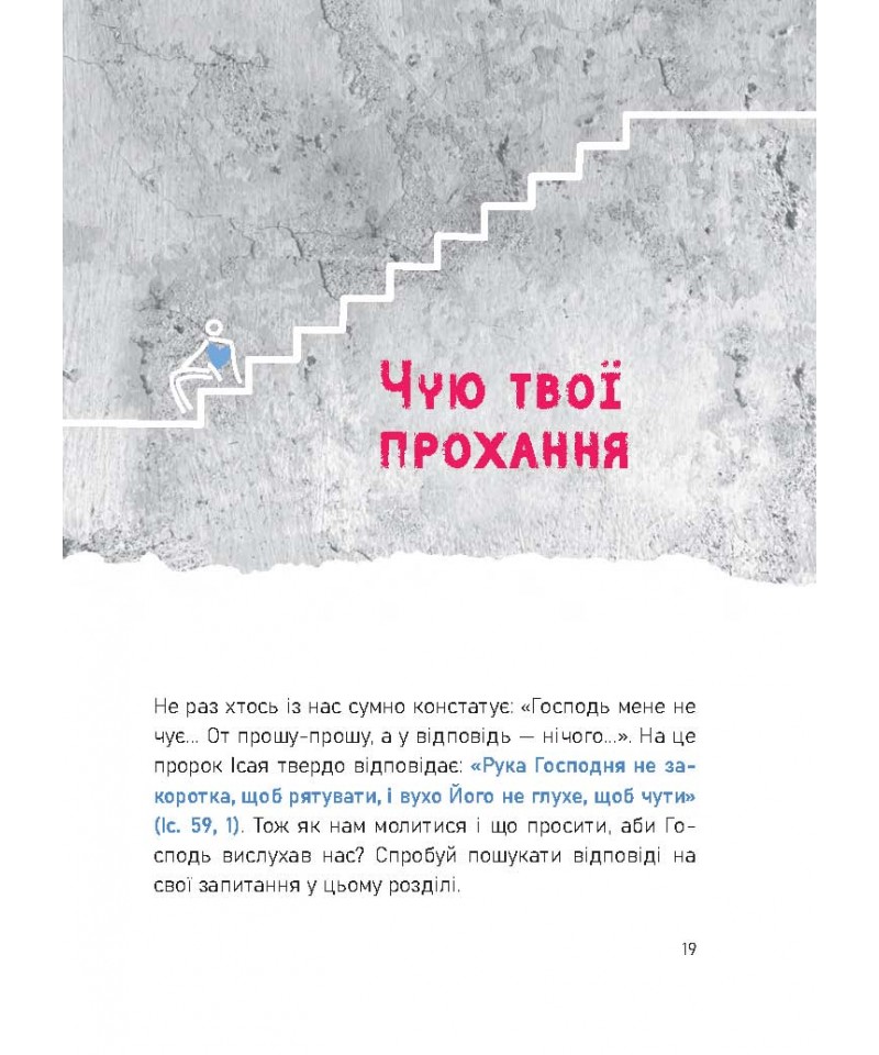 Важливу роль у сприйнятті відіграє сучасне, оригінальне, барвисте оформлення молитовника. Воно взаємодіє з текстами і пропонує кожному розпочати свою довірливу розмову з Богом, допомагаючи побачити у Ньому справжнього Друга і співрозмовника. Окремими розділами в молитовнику подані щоденні молитви, іспит сумління та катехизмові правди.
