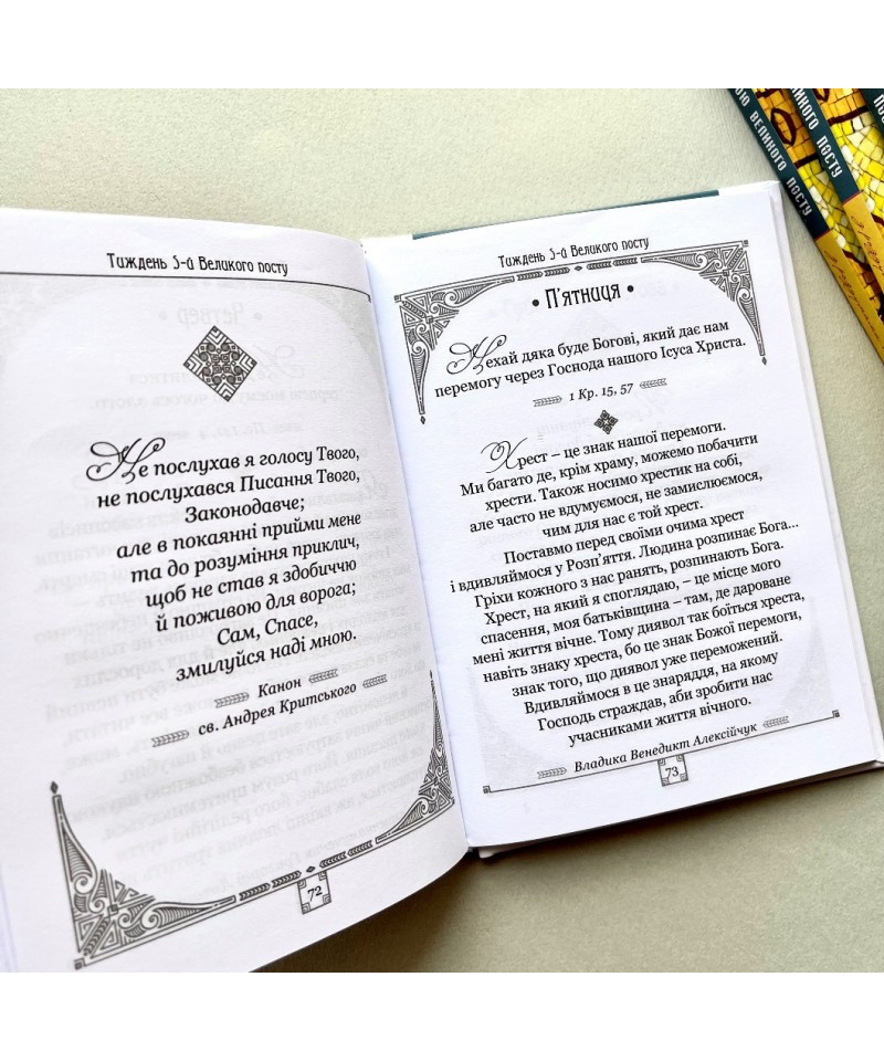 Ця збірка цитат про Великий піст допоможе християнам щодня упродовж цього періоду налаштовуватися на постування через думки визначних постатей нашої Церкви, Святе Письмо та молитву. Дозована кількість духовної їжі триматиме в тонусі ум і почуття постника, заякорить його у певній темі, даючи змогу Божому Слову вистоятися і дозріти в його душі та заохотити до постових практик.
