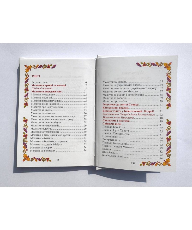 Молитовник містить нові тексти Божественної Літургії Йоана Золотоустого катехизмові правди, християнські пісні, коляди й щедрівки, а головне – дуже важливий розділ про те, як підготуватися до Сповіді та як вона відбувається.
