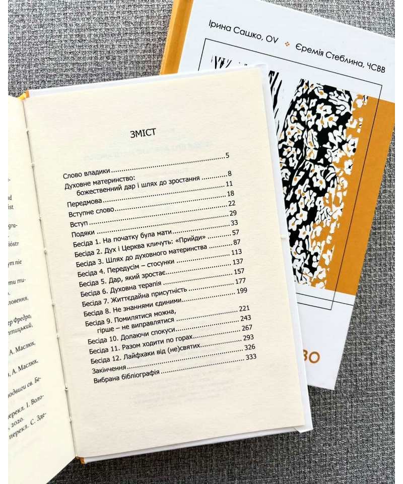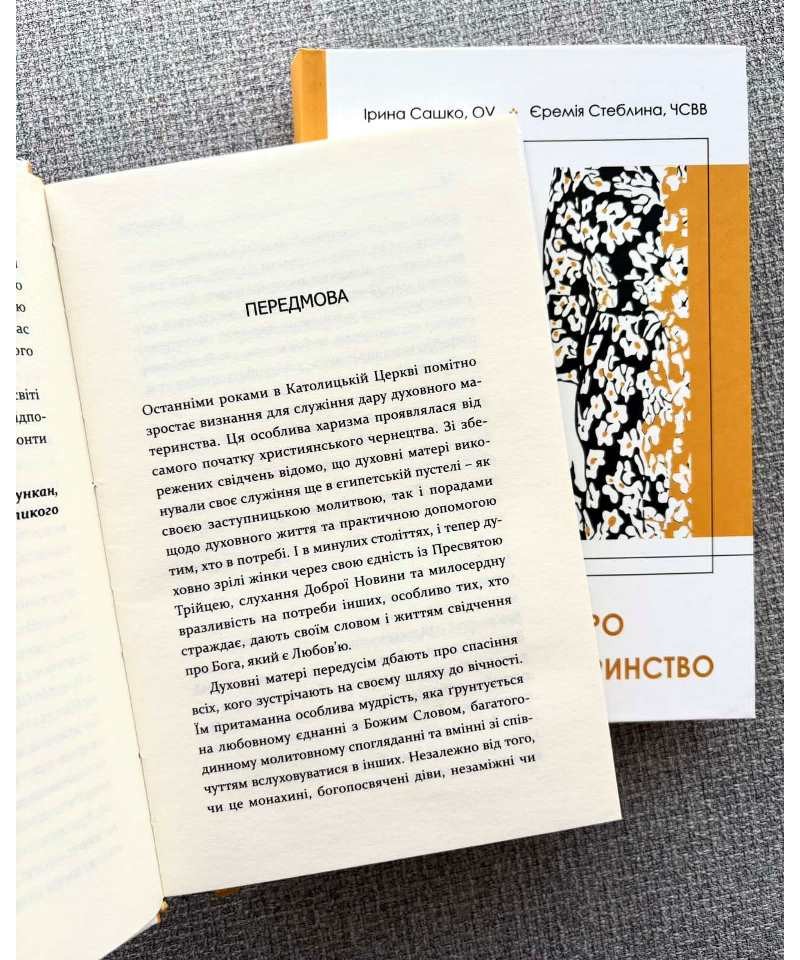 Книжка “Бесіди про духовне материнство” - це глибокий біблійний, догматичний і пасторальний аналіз покликання, місії та завдання кожної жінки. У ній с. Ірина Сашко та с. Єремія Стеблина, ЧСВВ, богопосвячені жінки, які представляють Західний та Східний обряди Католицької Церкви, розмірковують на тему духовного материнства.