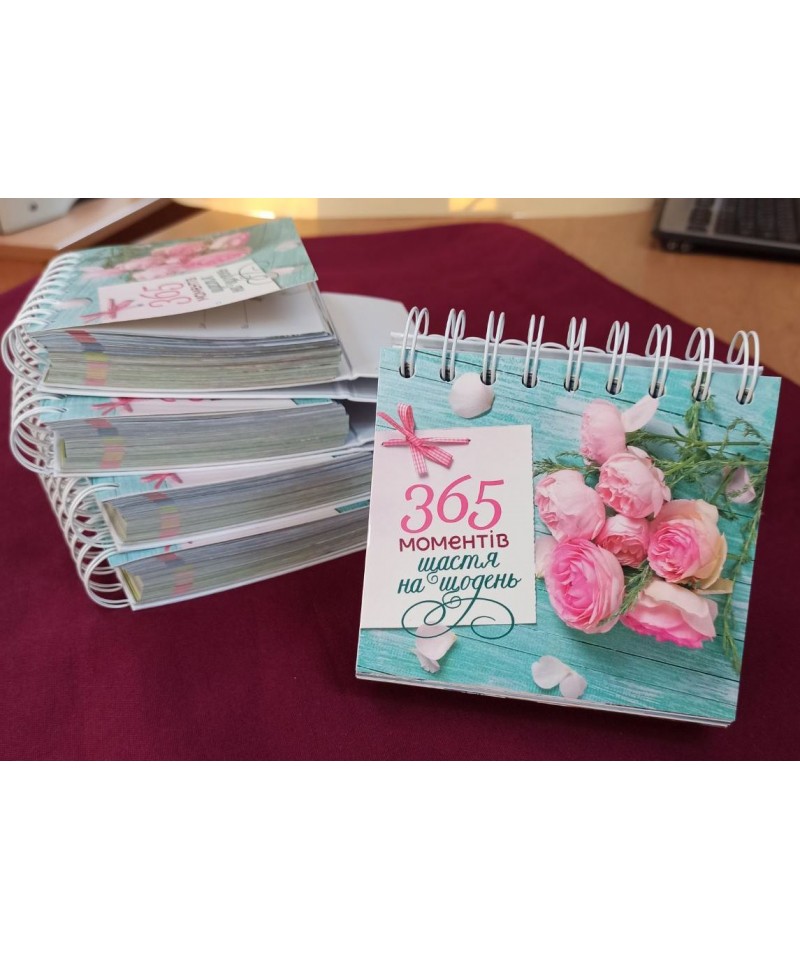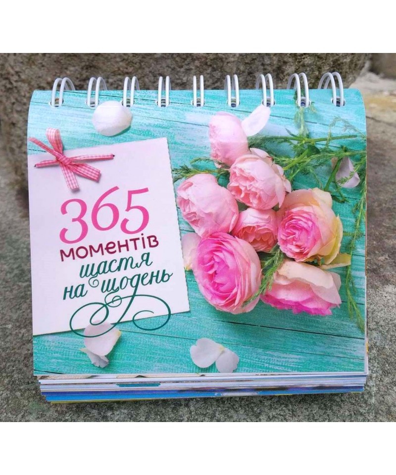 365 моментів щастя на щодень - це чудовий подарунок для кожного. Ошатне, барвисте оформлення, позитивні мотивуючі афоризми, якісна поліграфія - даруватимуть гарний настрій власникам календаря щодня.