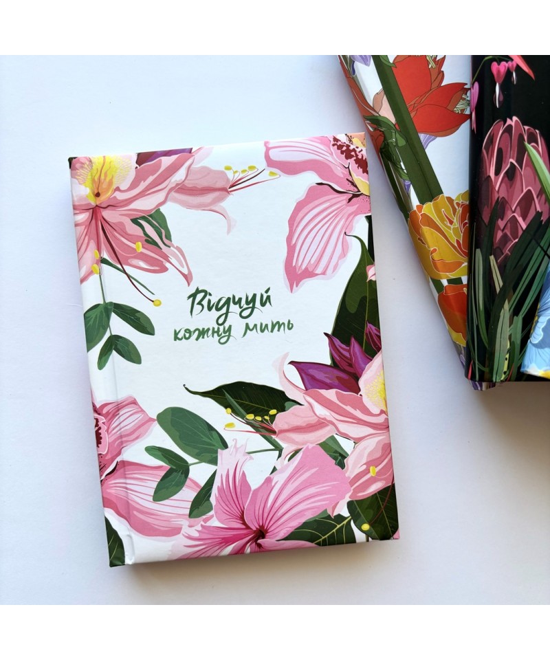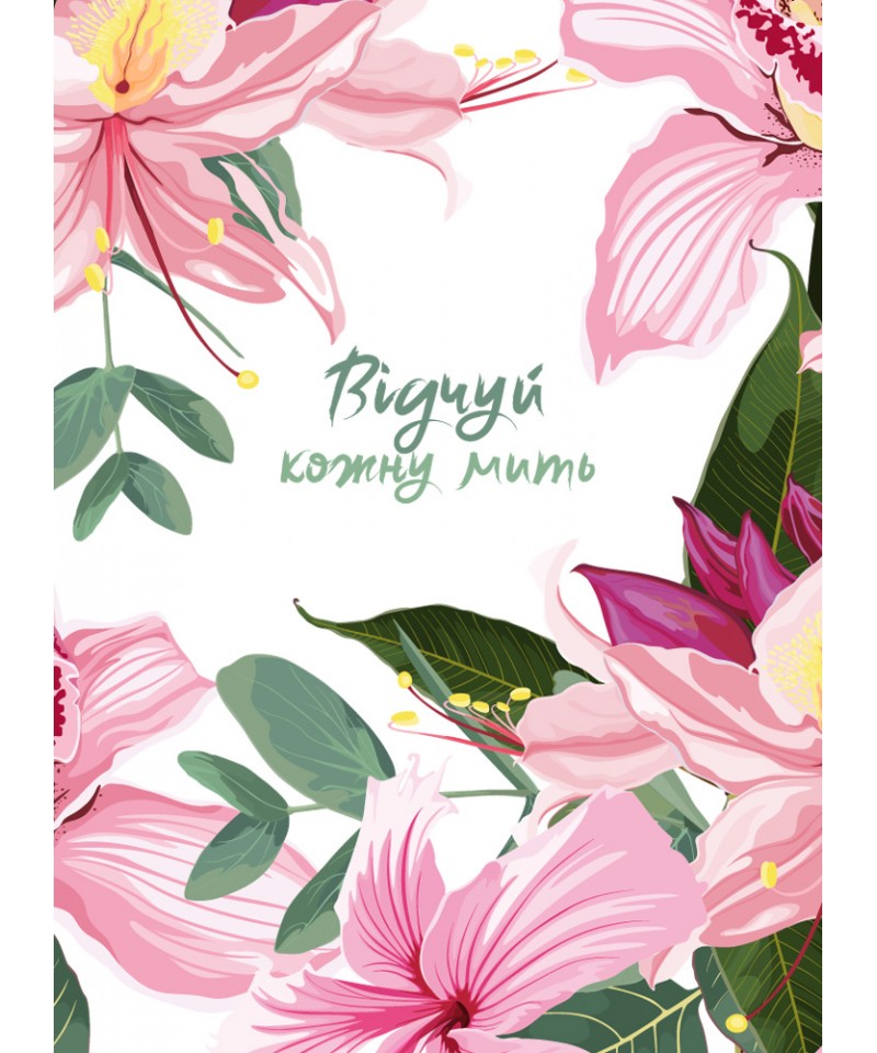 Іноді досить однієї миті, щоб зробити несподіване відкриття: про світ, про нібито звичайні речі, про те, що насправді цінне, та навіть про себе. Збережи цю мить! А оскільки таких митей у тебе багато – адже так? – тобі потрібно багато чистих сторінок і... натхнення. Ти неодмінно почерпнеш його з влучних цитат, вміщених тут, і з квіткових фантазій художниці Юлії Хвищук. Більше про її творчість – на сторінці в інстаграмі floralpatterndesign.