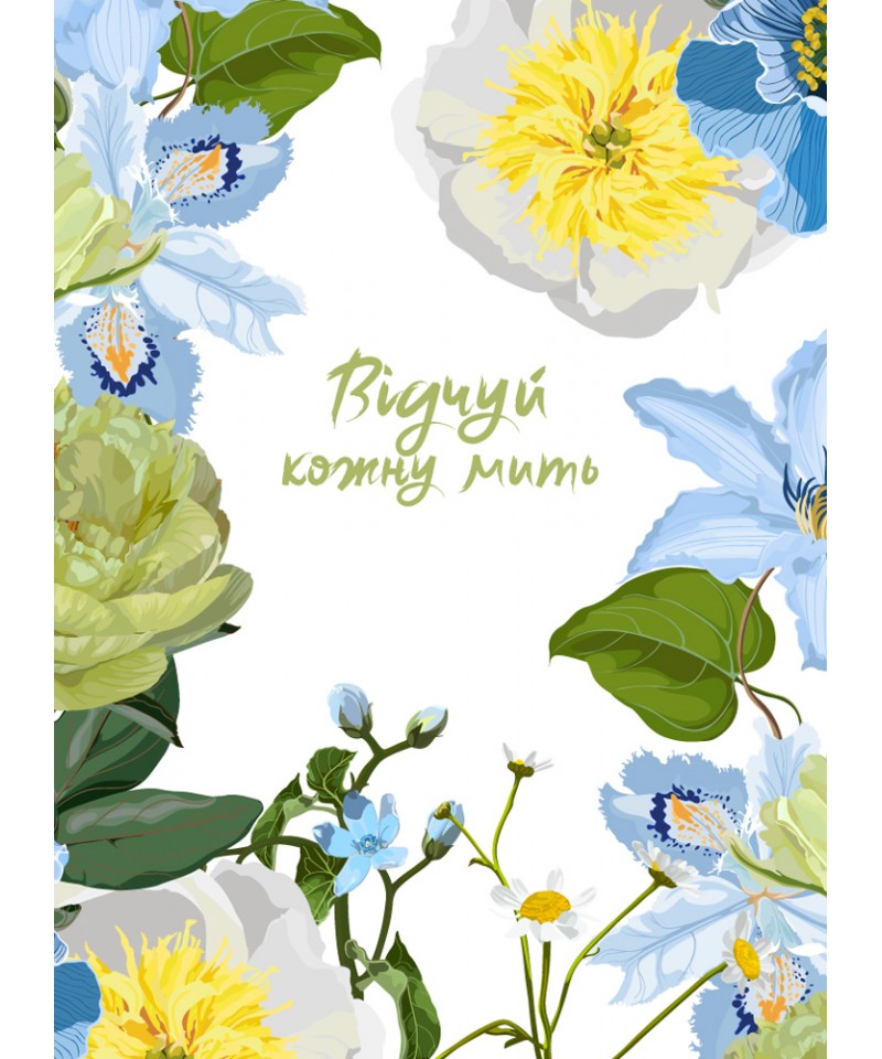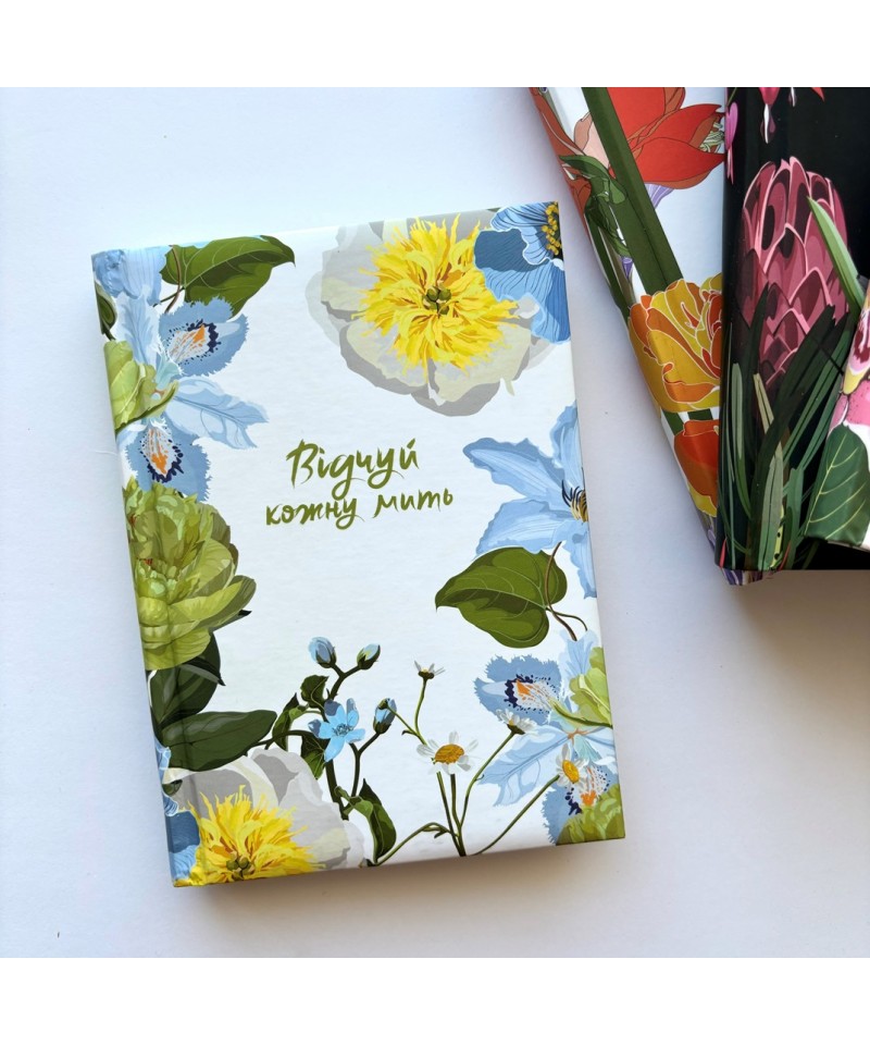 Іноді досить однієї миті, щоб зробити несподіване відкриття: про світ, про нібито звичайні речі, про те, що насправді цінне, та навіть про себе. Збережи цю мить! А оскільки таких митей у тебе багато – адже так? – тобі потрібно багато чистих сторінок і... натхнення. Ти неодмінно почерпнеш його з влучних цитат, вміщених тут, і з квіткових фантазій художниці Юлії Хвищук. Більше про її творчість – на сторінці в інстаграмі floralpatterndesign.