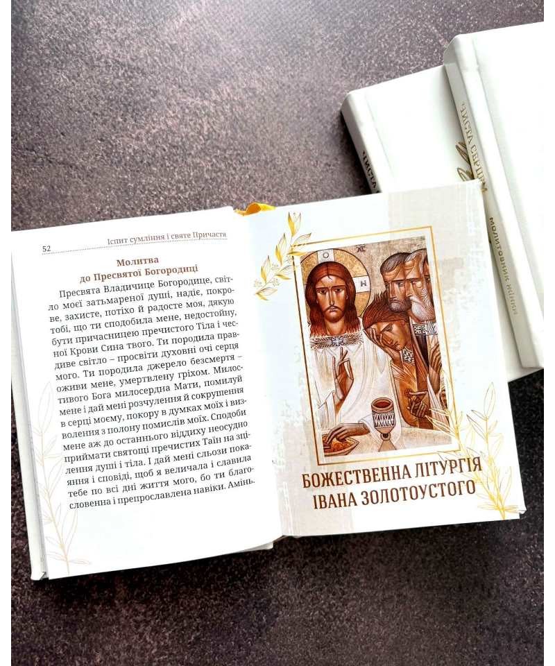 Початок кожного розділу оформлений іконами сучасної художниці Люби Яцків, споглядання яких допоможе зосередитися на молитві та поринути у духовні роздуми.