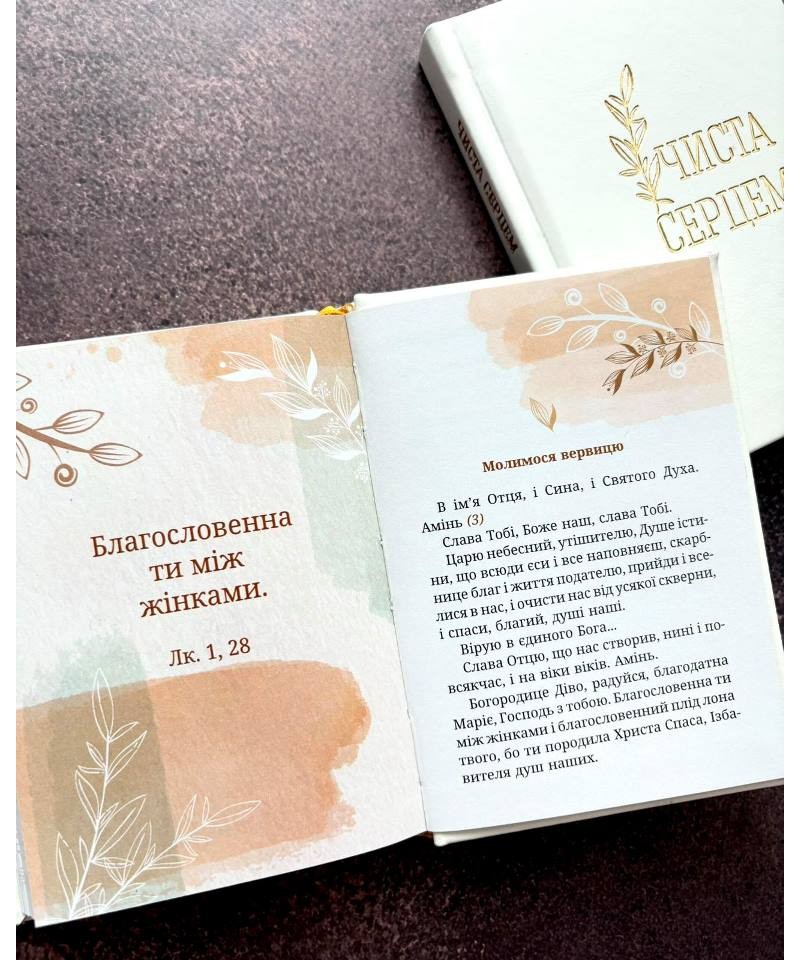 Молитовник “Чиста серцем” - це повноколірне подарункове видання, укладене з метою відповісти на базові духовні запити жінки. Молитовник містить основні щоденні молитви, оновлений текст Літургії, окремі Псалми та іспит сумління для жінок.