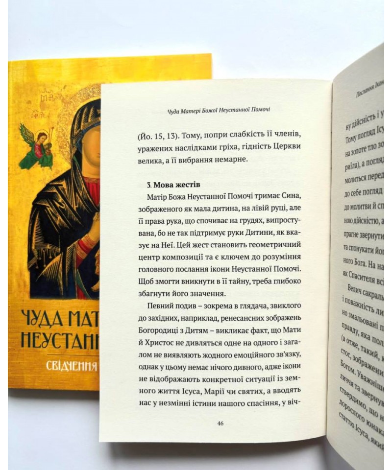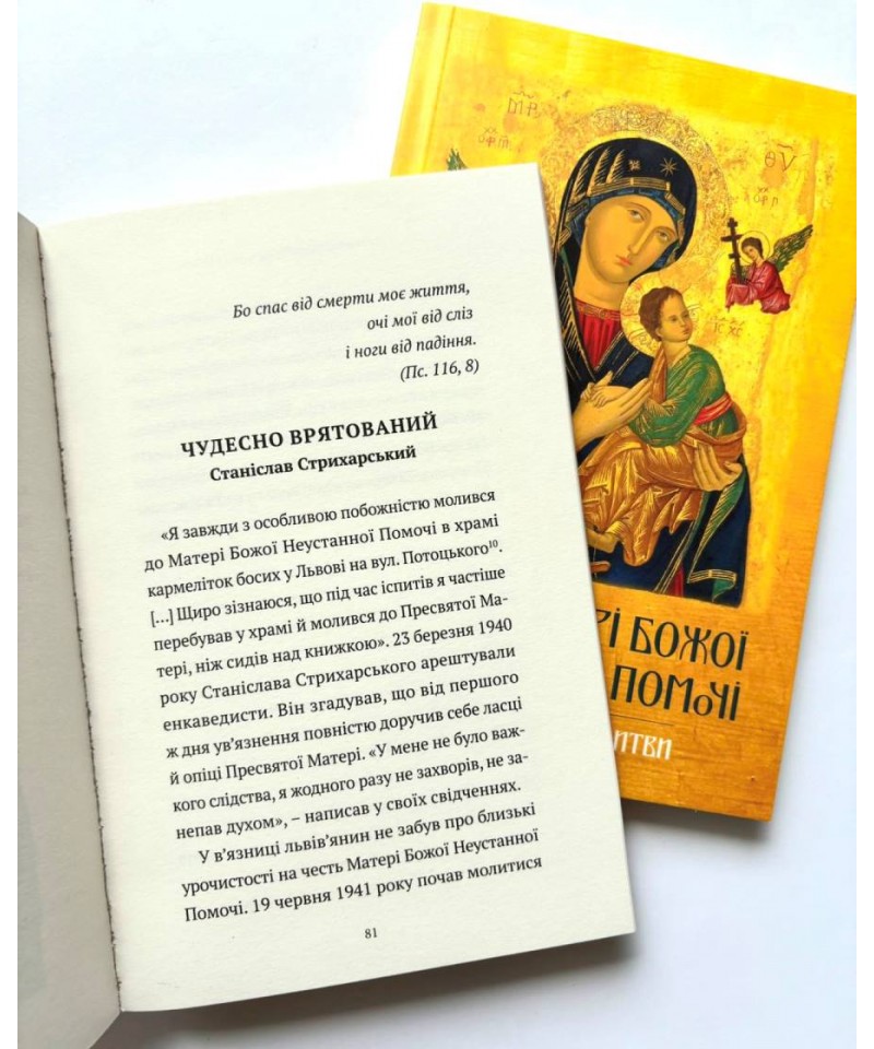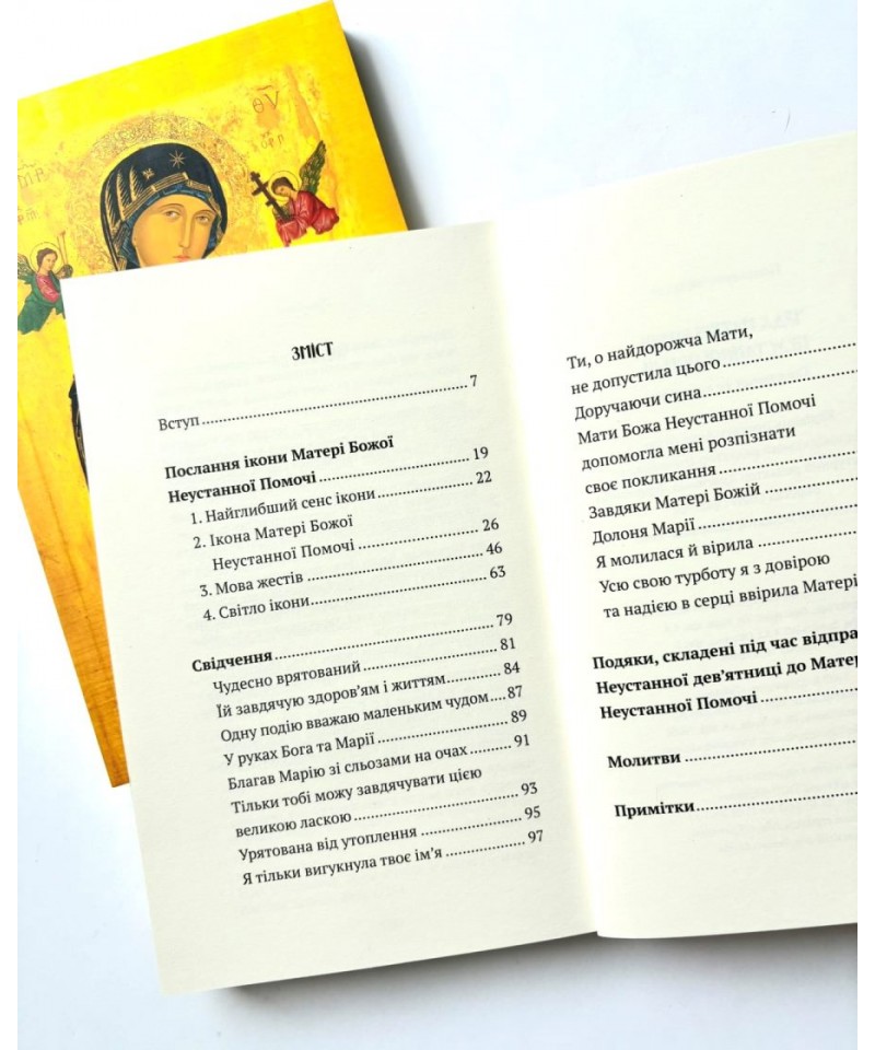 Ця книжка для всіх, хто цікавиться історією та значенням ікони Матері Божої Неустанної Помочі. У ній вміщено свідчення про чуда, випрошені за заступництвом Пресвятої Богородиці, та подяки від людей, які зверталися до неї у різних життєвих ситуаціях і потребах. Книжка розпочинається детальною розповіддю про історію, символіку та послання ікони Матері Божої Неустанної Помочі, а завершується молитвами.