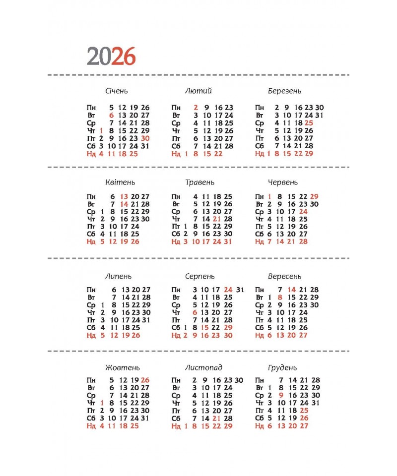 Цей календар-планер пропонує користувачам зручний формат, практичність і багато місця для записів. У 2026 році тих, хто любить добре організувати свій час, супроводжуватимуть мотиваційні цитати авторства о. Яцека Прусака, ТІ з наших популярних книжок “Підіть кудись на самоту” та “Зрозуміти себе. Пізнати Бога”