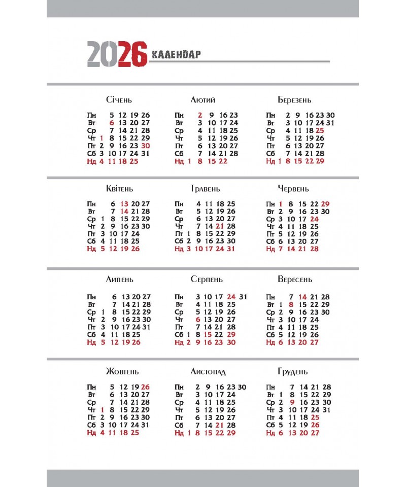 Календар чоловіка 2026