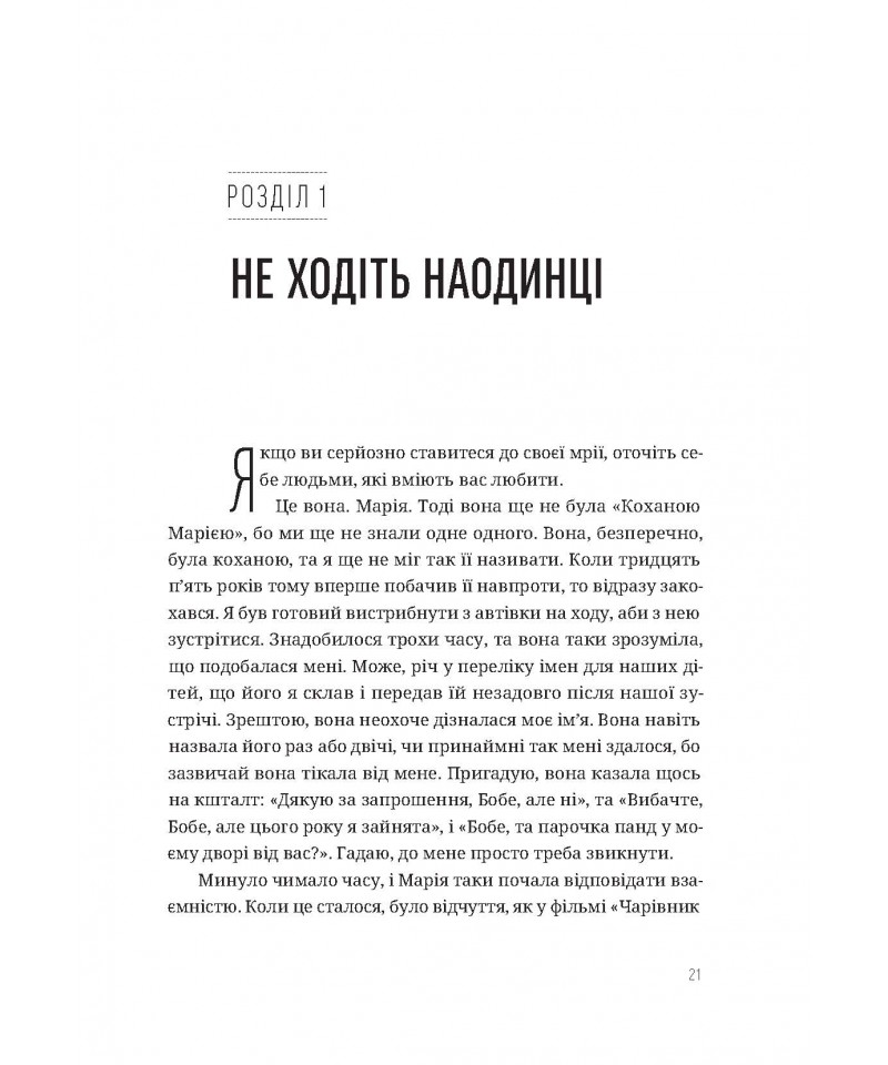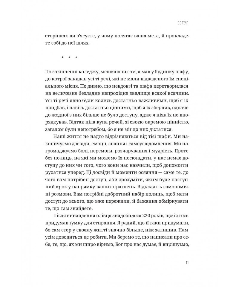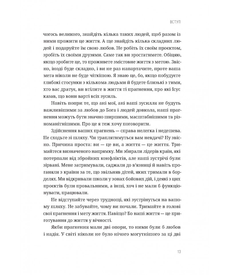 «Я написав кілька книжок і припускаю, що декотрі з моїх історій вас насмішили, а декотрі довели до сліз. Я хочу, щоб ця книжка змусила вас думати. Сподіваюся, що, читаючи її, ви з’ясуєте, у чому полягає ваша мета, й прокладете собі до неї шлях».