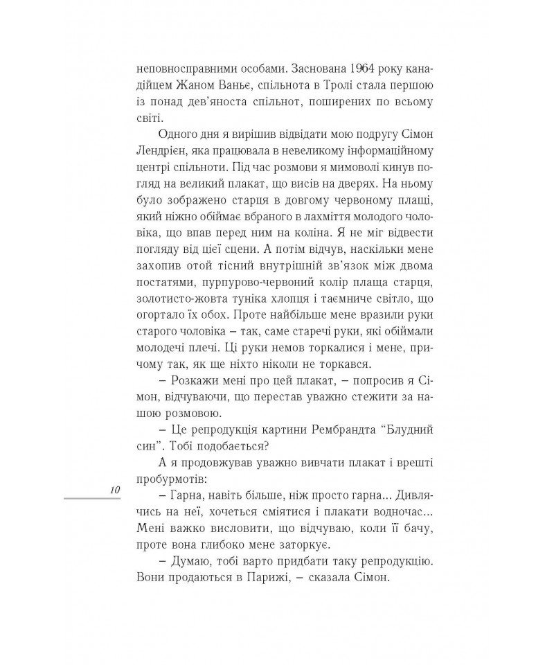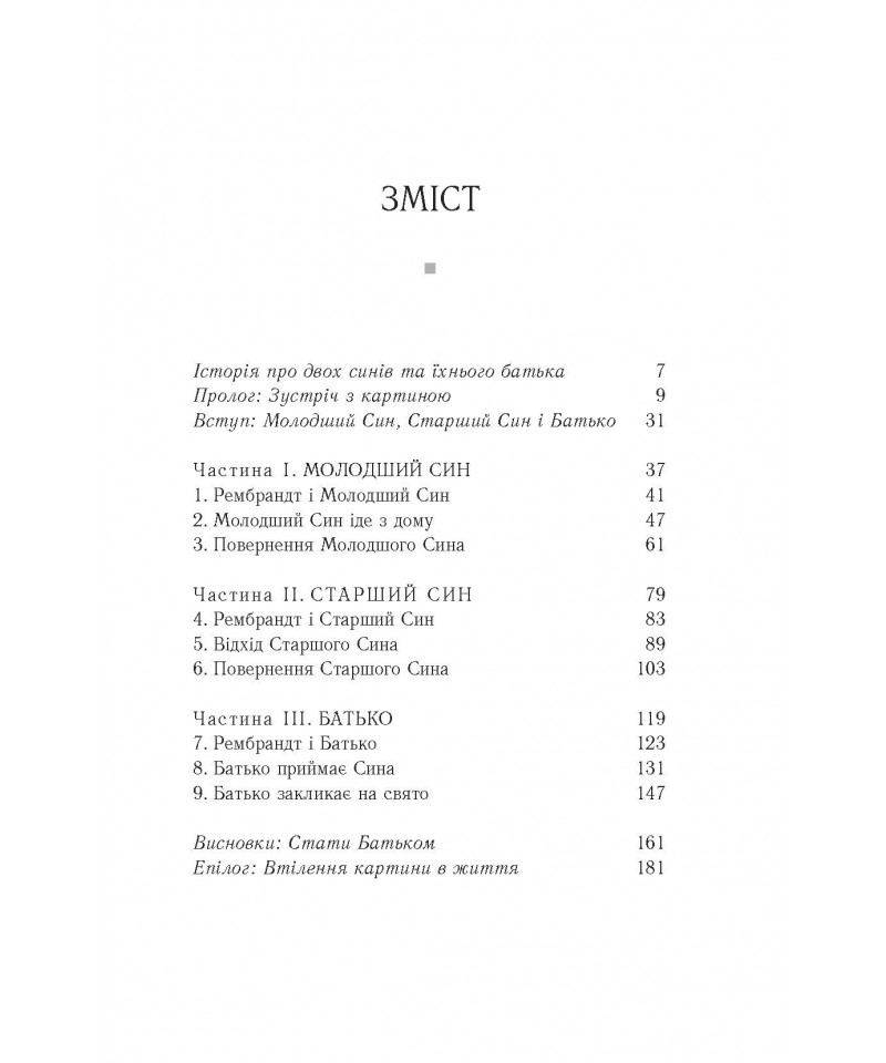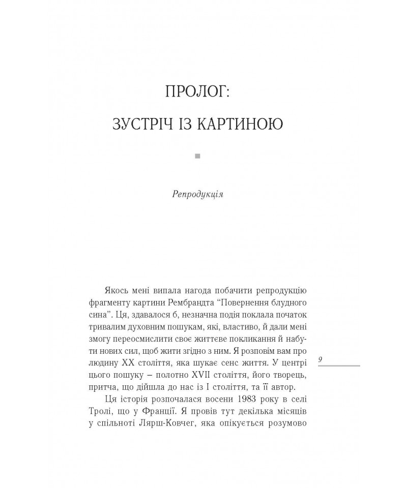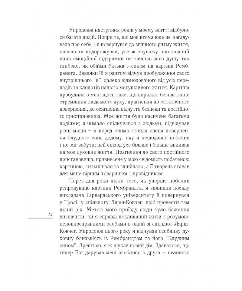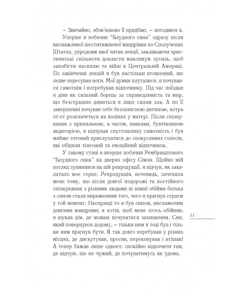 Генрі Ноуен у своїй книзі майстерно сплів в одну оповідь на перший погляд різні історії: історію Рембрандта, людську історію та історію Божу. Ця чудова праця, неймовірно прекрасна як у простоті своєї мудрости, так і в незвичайній красі переміни, до якої закликає нас. І заклик цей упродовж віків добре знаний християнам: любити, як батько, і вдячно приймати любов, як син.