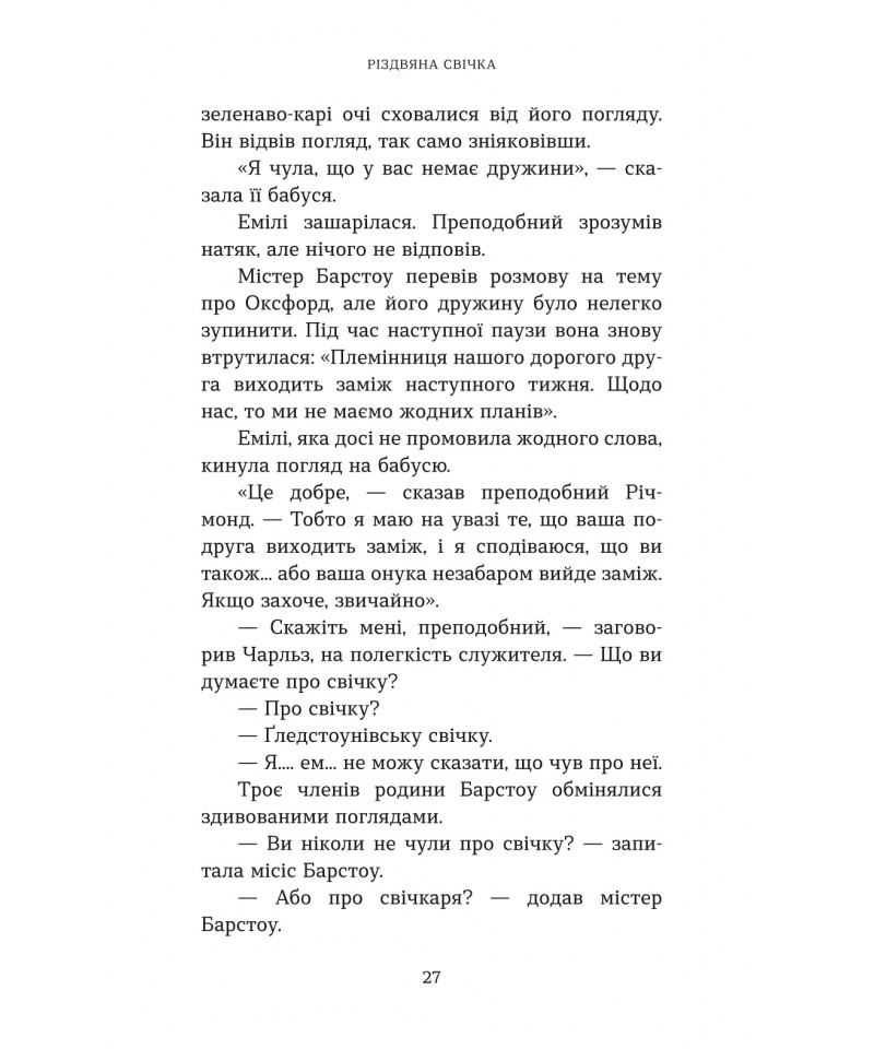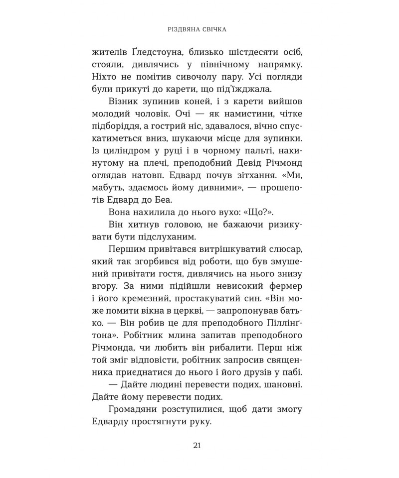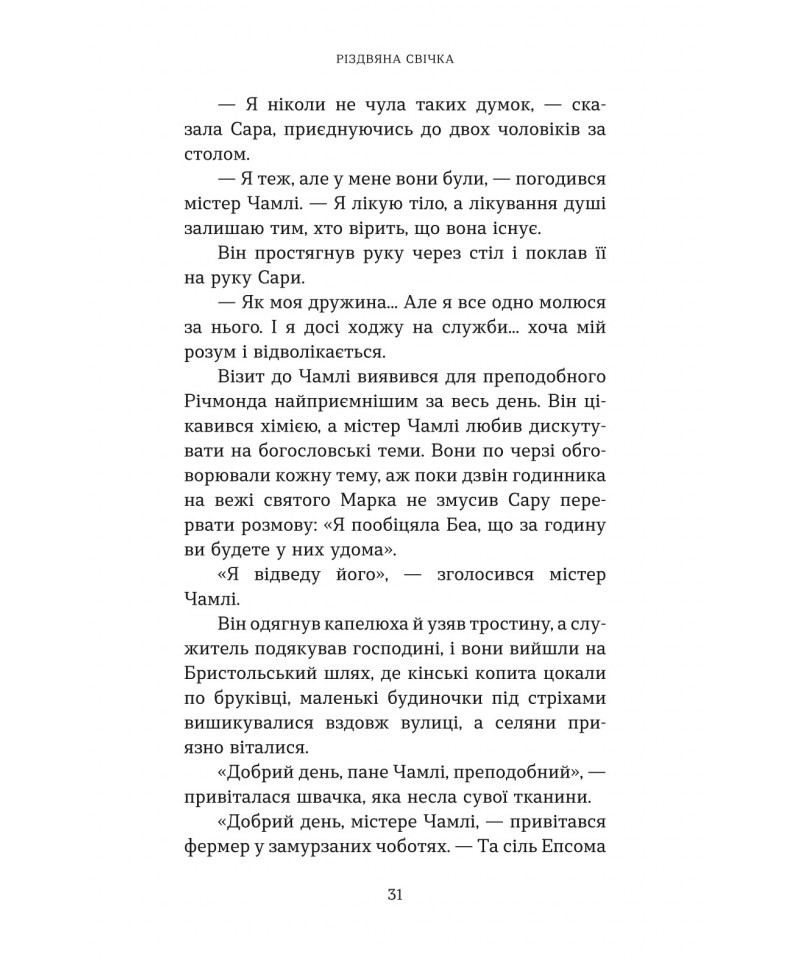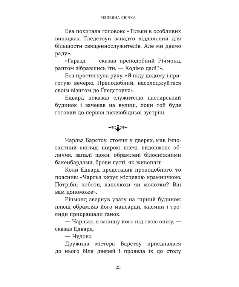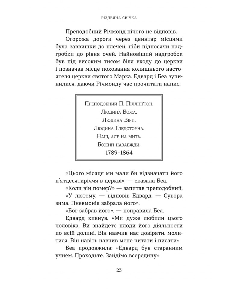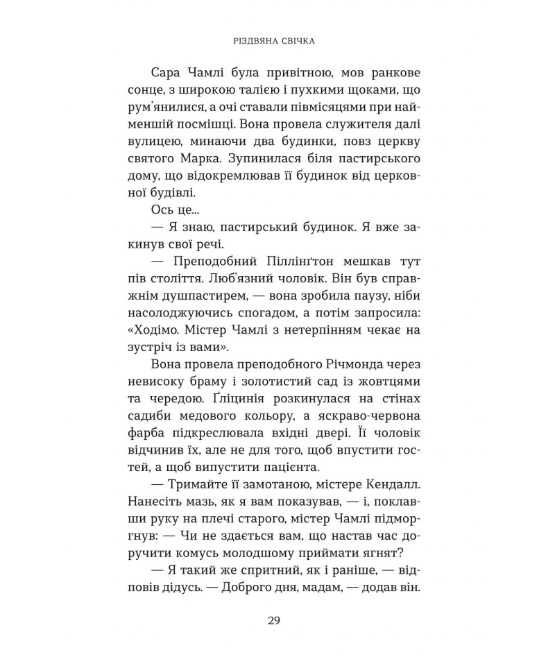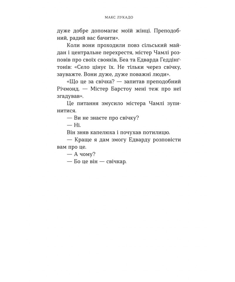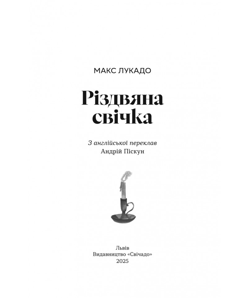 Ґледстоун — тихе й непримітне англійське містечко, яке, однак, вирізняється особливою традицією. Кожні 25 років напередодні Різдва ангел відвідує родину місцевого свічника і доторкається до однієї свічки. Той, хто її запалить, отримує здійснення свого сокровенного бажання. Як далі розгортаються події, – читачі довідаються із книжки відомого сучасного американського автора Макса Лукадо “Різдвяна свічка” – книжки, що стала бестселером, а також була екранізована у 2013 році.
