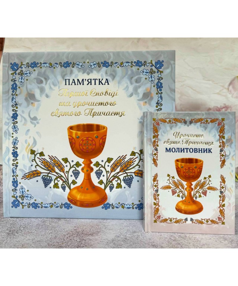 У набір входить молитовник та альбом до першої Сповіді й урочистого святого Причастя.