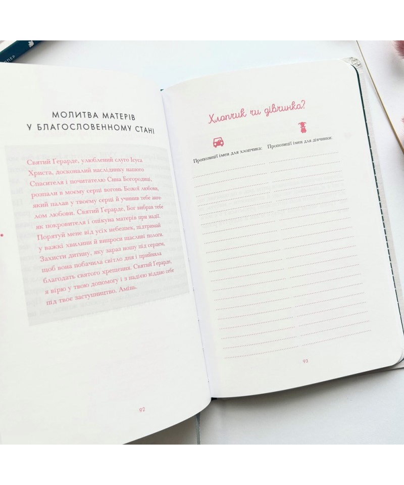 Це особлива книжка-органайзер для жінок, які чекають дитину. Авторка ділиться з читачками своїми думками на тему материнства, у ненав’язливий спосіб допомагає прийняти й зрозуміти зміни, які відбуваються в житті вагітної жінки. Майбутні мами також дізнаються про розвиток малюка, зможуть надихнутися спеціально підібраними цитатами зі Святого Письма, прочитати про святих покровителів, які опікуються жінками під час вагітности й пологів.