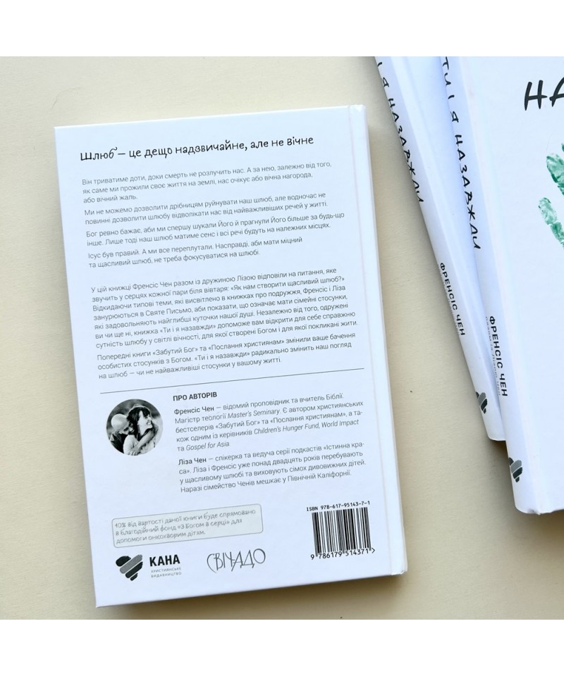 У цій книжці Френсіс Чен разом із дружиною Лізою відповіли на питання, яке звучить у серцях кожної пари біля вівтаря: «Як нам створити щасливий шлюб?» Відкидаючи типові теми, які висвітлено в книжках про подружжя, Френсіс і Ліза занурюються в Святе Письмо, аби показати, що означає мати сімейні стосунки, які задовольняють найглибші куточки нашої душі. Незалежно від того, одружені ви чи ще ні, книжка «Ти і я назавжди» допоможе вам відкрити для себе справжню сутність шлюбу у світлі вічності, для якої створені Богом і для якої покликані жити.