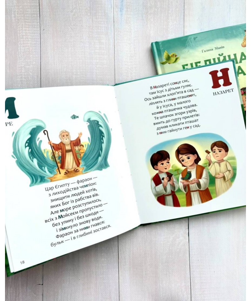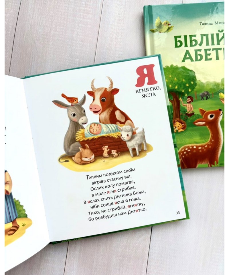 Для дитини вивчення літер — найкращий час, щоб приготуватися до майбутнього знайомства з Книгою книг — Біблією. І саме абетка допоможе дитині легко поринути у біблійний світ через найпростіші слова, що називають предмети, явища, рослини, тварини, людей, які існують у Біблії.