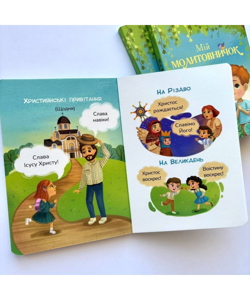Цей молитовник дитина може брати зі собою до церкви і, розглядаючи зображення, повторювати основні молитви разом з усіма. А ще зможе помолитися до Святого Миколая та Ангела Хоронителя, щоб завжди були поруч і оберігали від усього злого.