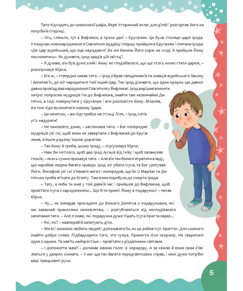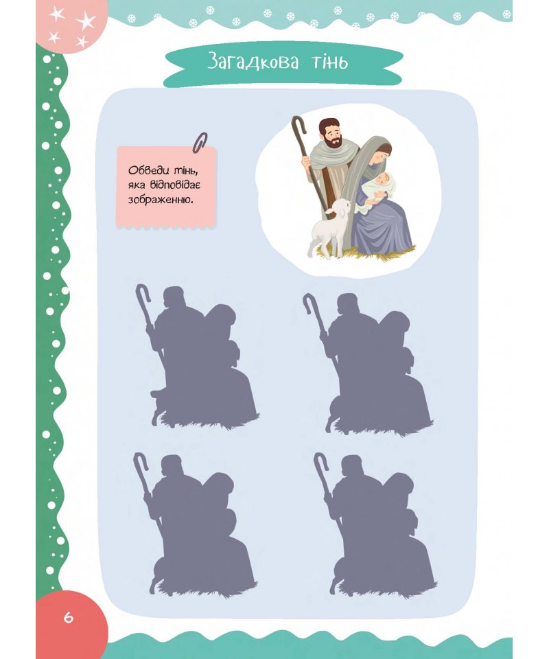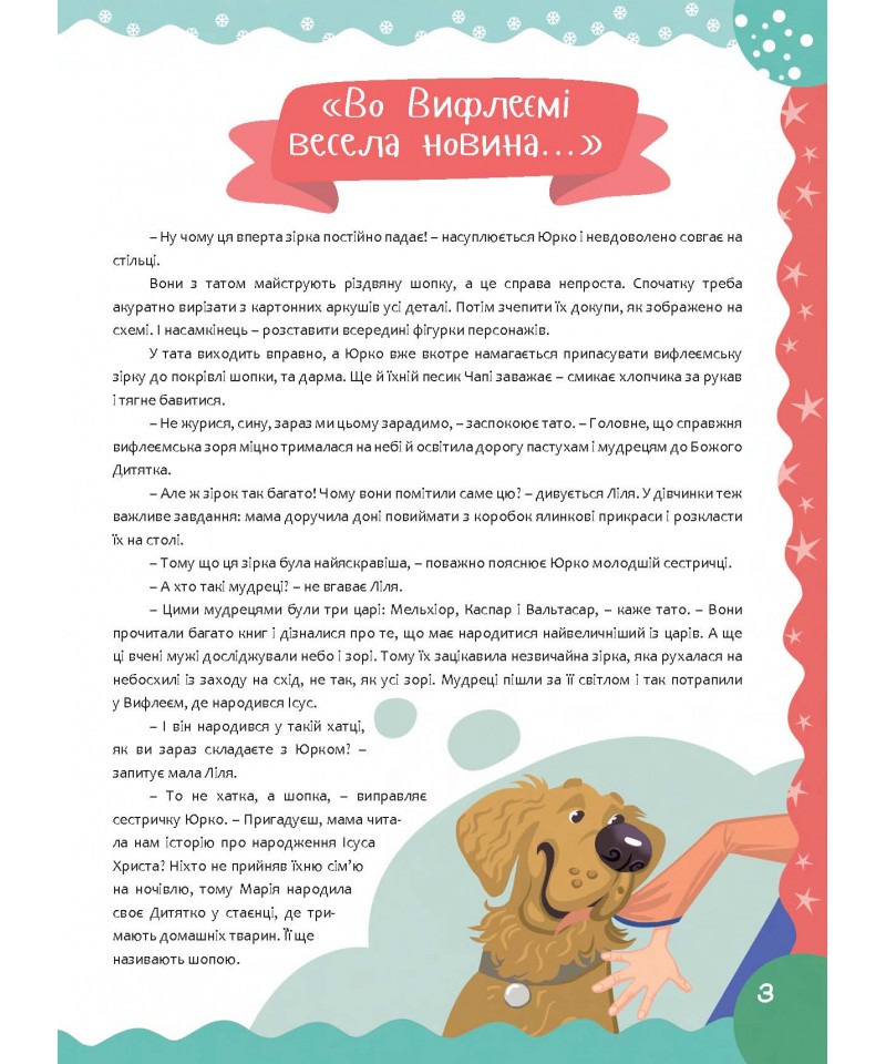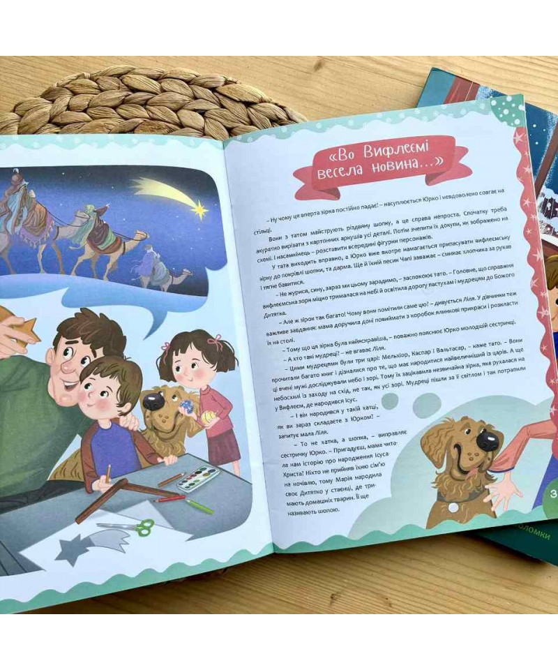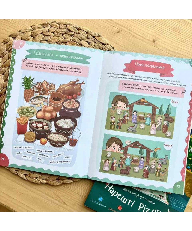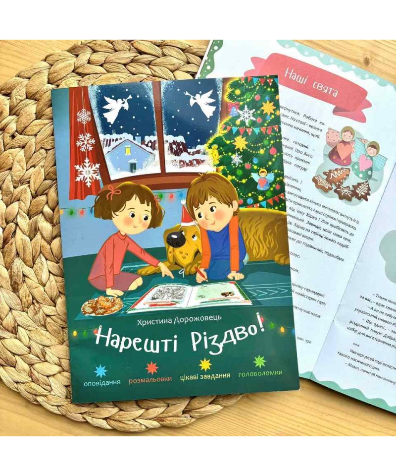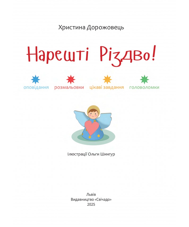 Ця книжка допоможе цікаво, пізнавально і весело провести час в очікуванні різдвяних свят. Оповідання розкажуть дітям про історію народження Ісуса Христа і українські традиції святкування Різдва Христового. Також це чудовий спосіб згуртувати сім'ю за розв'язуванням захопливих завдань.