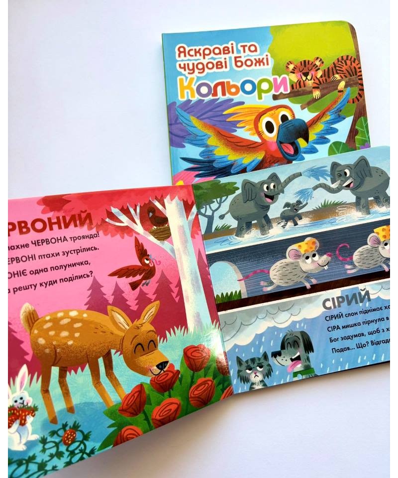 Досліджувати світ – що може бути цікавішим! У цьому допоможе книжечка «Яскраві та чудові Божі кольори». Читаючи веселі віршики, розглядаючи картинки, шукаючи відповіді на запитання, малеча з допомогою батьків навчиться пізнавати природу і все, що нас оточує.