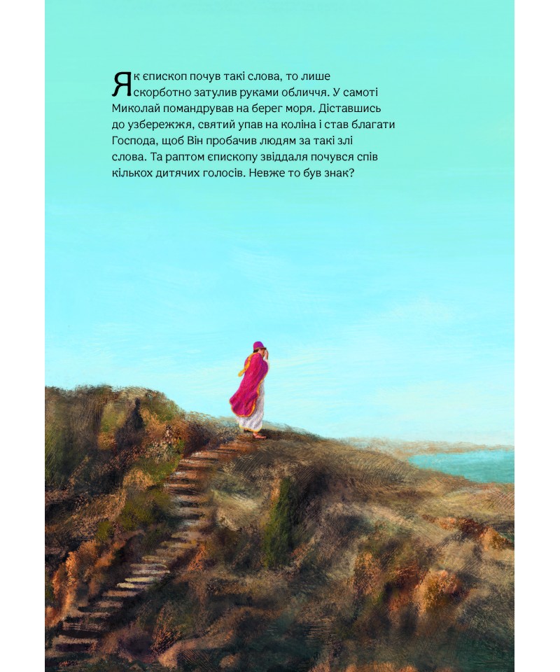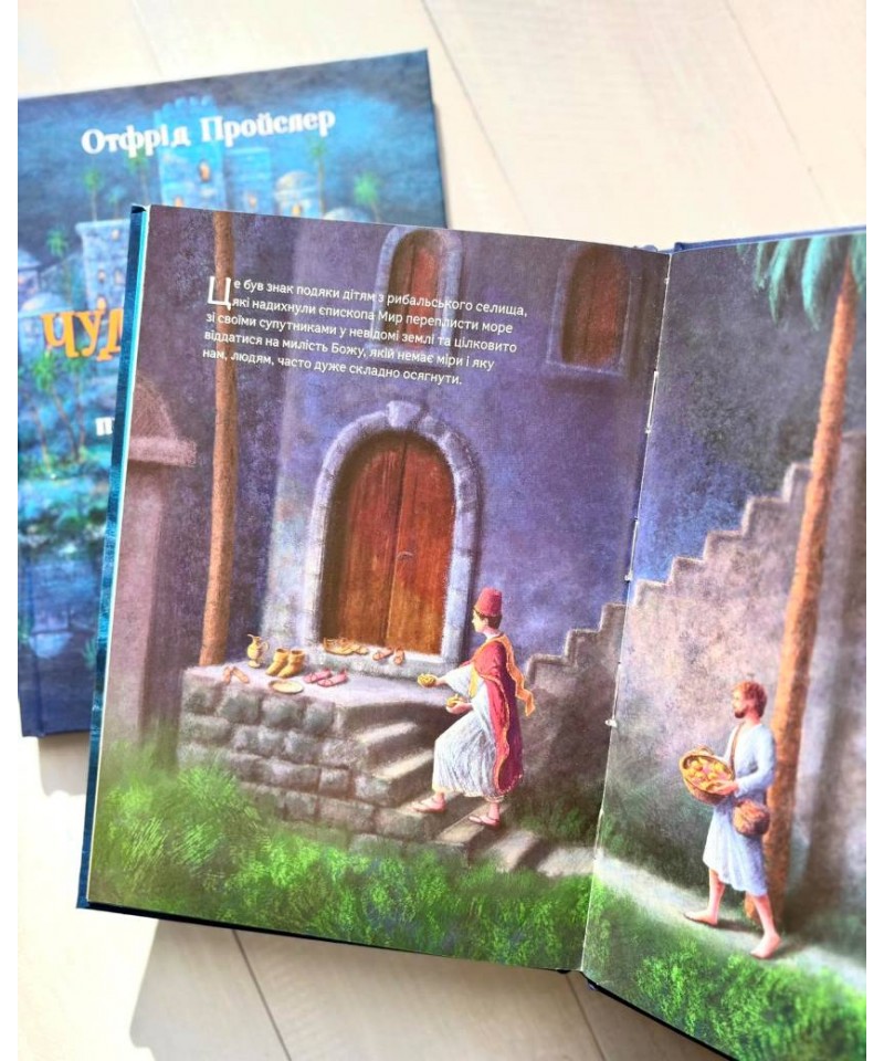 Отфрід Пройслер, класик німецької дитячої літератури, розповідає зворушливу, поетичну і водночас драматичну історію про святого Миколая — єпископа Мир Лікійських, який, за велінням серця і з Божої ласки, вирушає в небезпечну морську подорож, аби врятувати свій народ від голоду. Заснована на давньому християнському переказі, ця легенда оживає в яскравому художньому стилі, наповненому вірою, милосердям і надією.