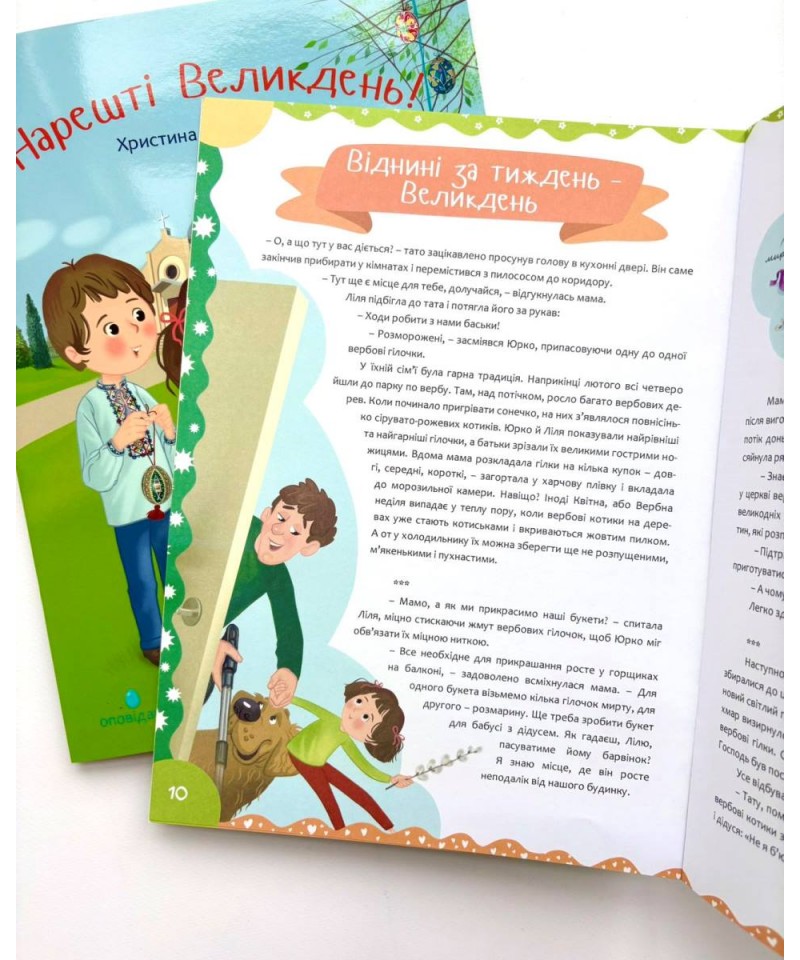 Авторка запрошує читачів у передвеликодній час погостювати в сім'ї, яку вони вже знають з книжки "Нарешті Різдво!". Як ця сім'я готується до свята Воскресіння Христового, як батьки пояснюють дітям, чому ця подія така важлива для всіх християн, якими родинними традиціями вони радо поділяться з усіма? Про це розповідається у формі оповідань та захопливих завдань. Чому б не провести час передвеликодніх приготувань усією сім'єю за щирим спілкуванням та за різноманітними творчими заняттями? Книжка вабить яскравими ілюстраціями і зацікавить як дітей, так і дорослих.