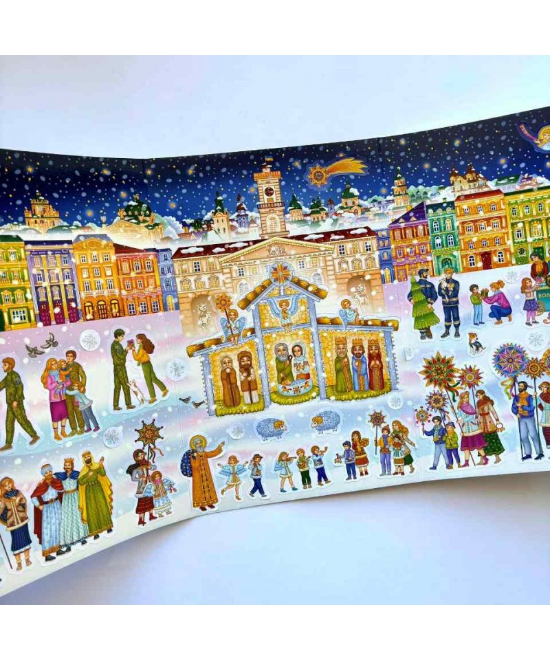 “Різдвяна шопка у Львові” - це саморобка, у якій дуже багато цікавого. Готуючись до свята Різдва, діти своїми руками зможуть змайструвати шопку, до якої прямують різні персонажі: малі та дорослі, колядники та вертепи, люди різних станів та професій. Їхній шлях можна відтворити за допомогою наліпок, які так люблять діти. А ще у наборі ви отримаєте чудовий бонус — розмальовку в атмосфері колядок. Готуємося до Різдва разом!