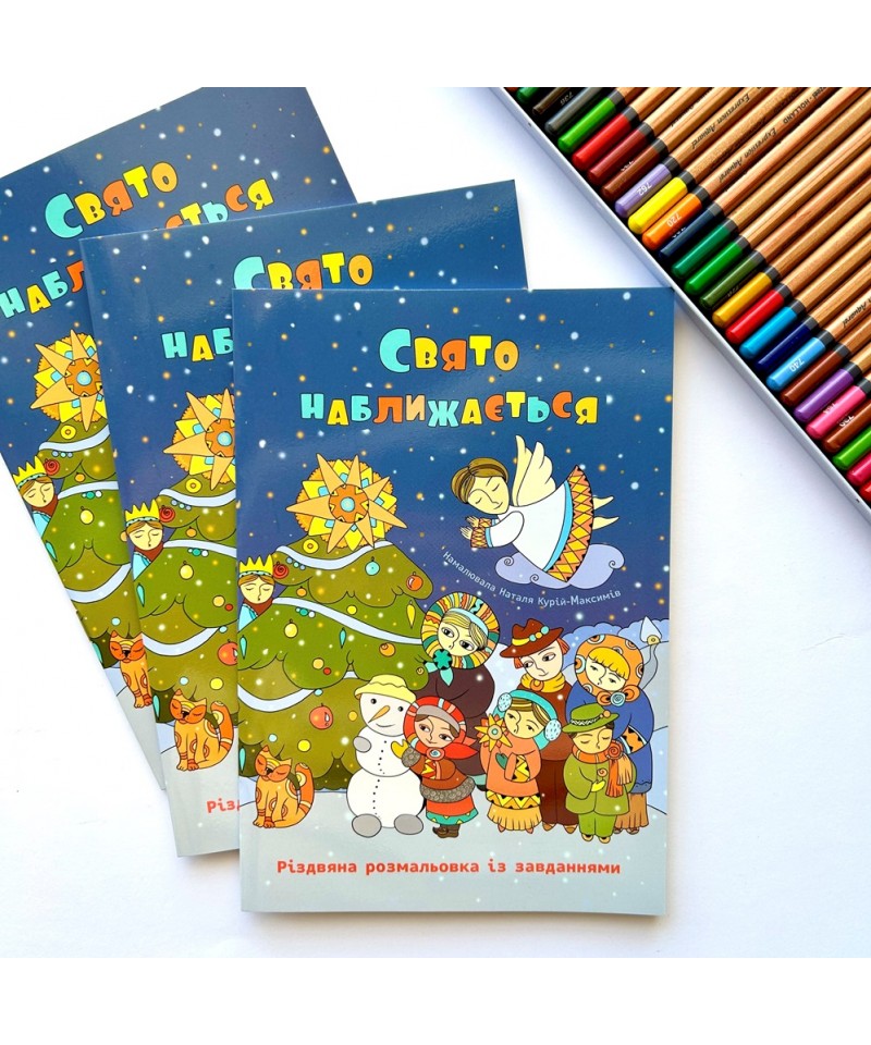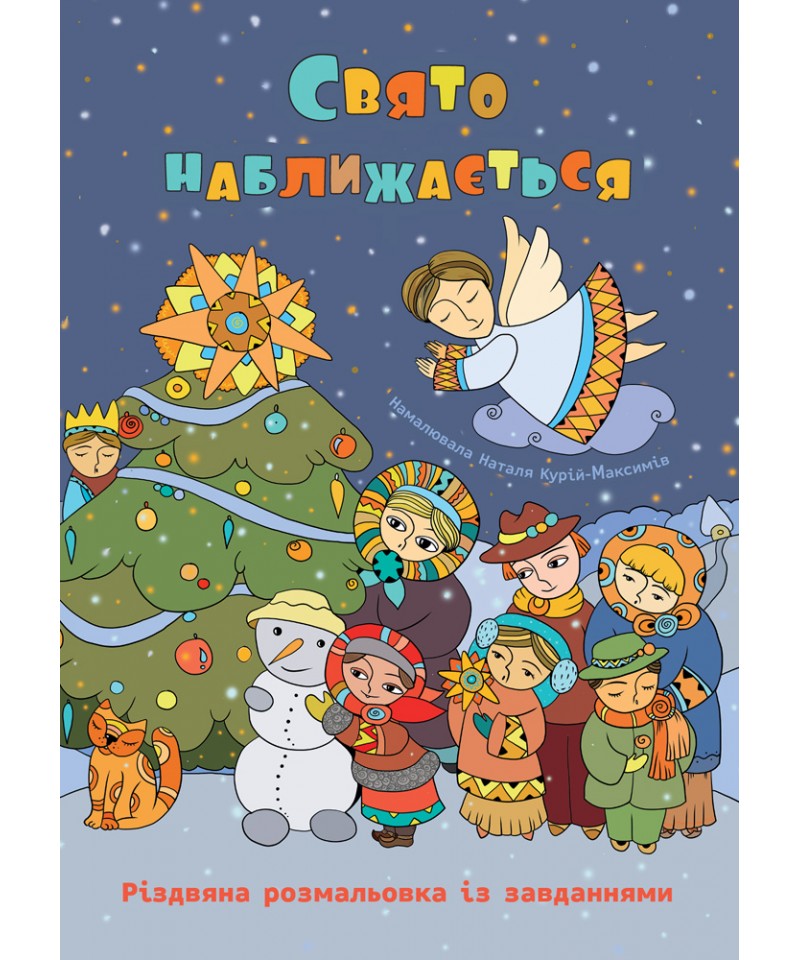 Пропонуємо розмальовку різдвяної тематики для дітей 4+ років. Окрім розмальовування ялинки, св Миколая тощо дітям запропоновані цікаві завдання: домалювати малюнок (за пунктиром) або намалювати свій; знайти на малюнку певні речі; знайти відмінності у двох схожих малюнках; розмалювати різними кольорами кульки на ялинці, що мають різну форму, та інші.