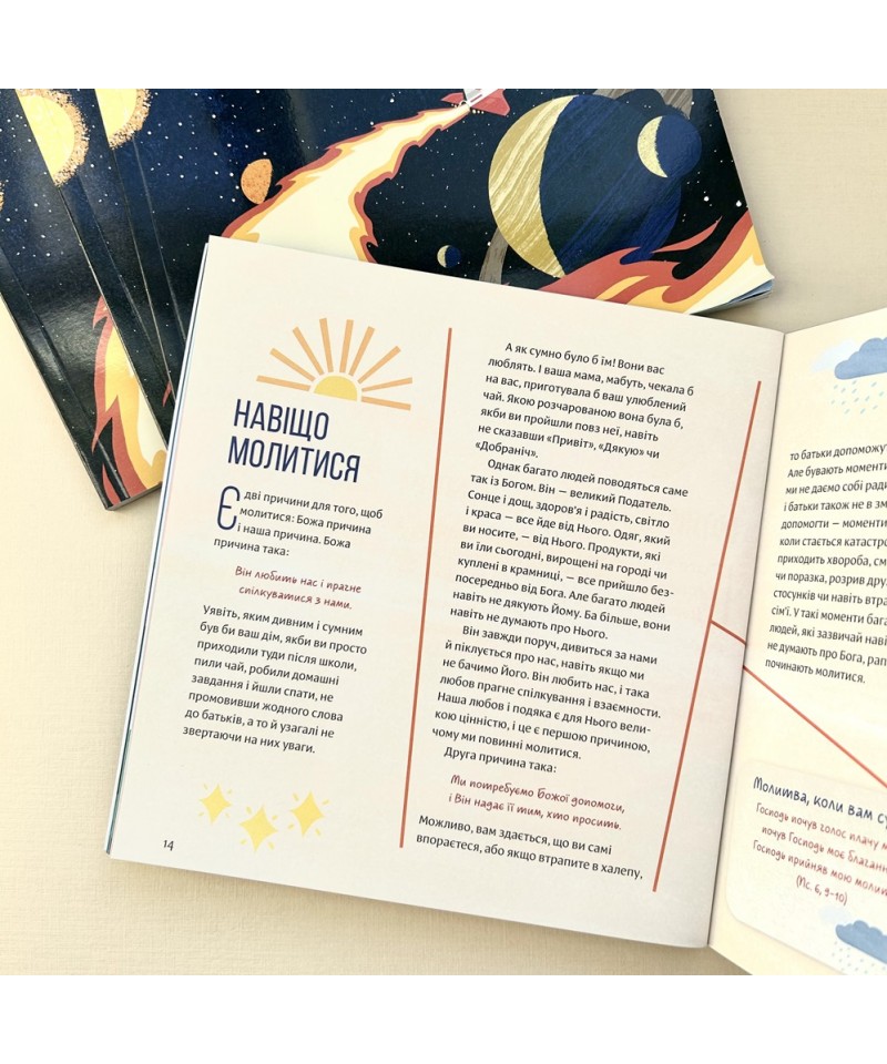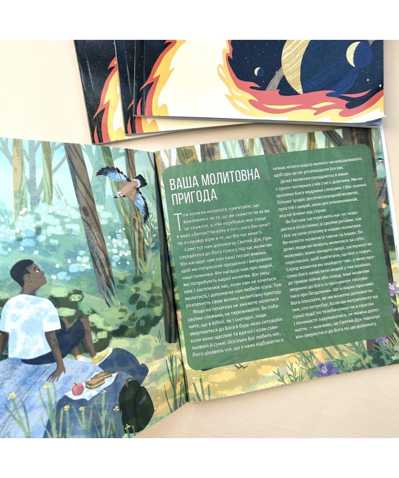 Саме так: молитва — це пригода. Ніколи такого не чули? Авжеж, молитва може бути цікавою, творчою, запальною і ніяк не нудною. Ця книжка — чудовий посібник із молитви для дітей та підлітків. Кольорові сторінки заохочують поринути в пригоду спілкування з Небесним Отцем. Адже молитва — це насамперед спілкування двох осіб, а не лише повторювання завчених віршів. Короткі історії із життя звичайних людей та приклади з Біблії допоможуть зрозуміти, чим є молитва і що це важлива частина наших стосунків з Богом.